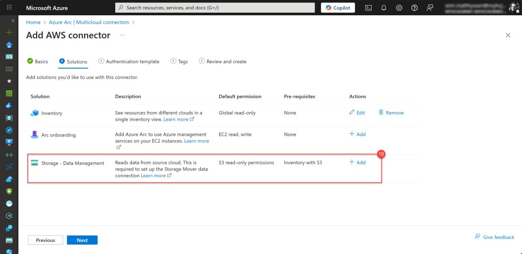 - Add the Storage – Data Management solution to an existing AWS multicloud connector