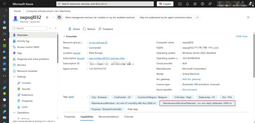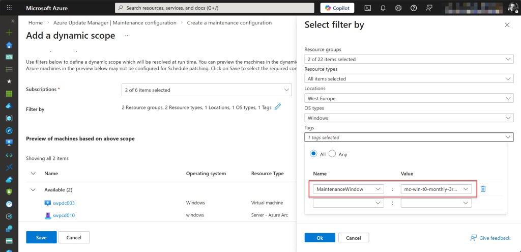 This approach makes patch management far more scalable. Newly deployed machines can automatically inherit the appropriate patch schedule as soon as the correct tag is applied, enabling a more automated and predictable update process across Azure VMs and Arc-enabled servers.