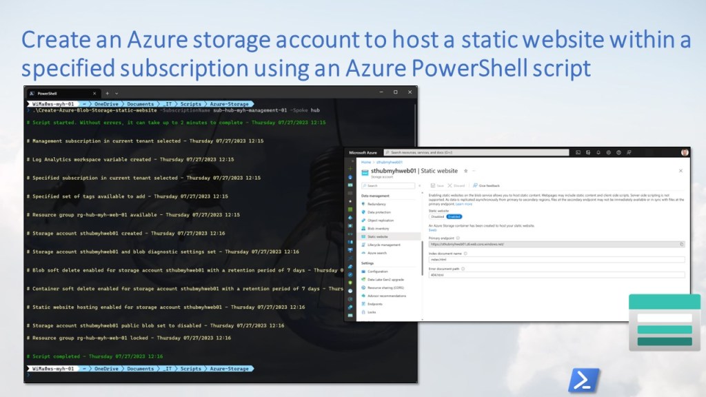 This blog post will demonstrate how to use an Azure PowerShell script to create an Azure storage account to host aContinue Reading